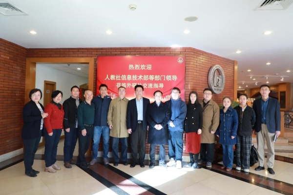 2025年3月25日,人民教育出版社(以下简称“人教社”)期刊数字出版平台调研组一行到访外语教学与研究出版社(以下简称“外研社”),双方就期刊数字化平台建设、出版流程优化及出版质量管理等议题进行了深入的沟通和交流。