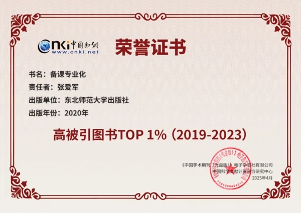 近日,中国知网·中国科学文献计量评价研究中心(CNKI)发布了“高被引图书TOP1%(2019—2023)”榜单,东北师范大学社出版的《物理课程与教学论》《备课专业化》入选。