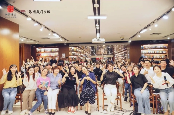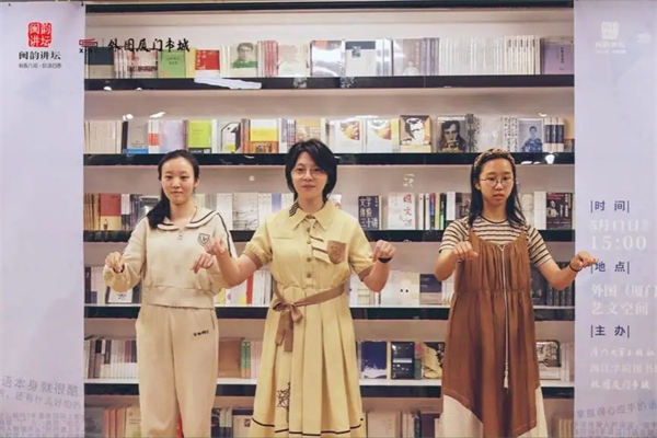 5月11日,由外图厦门书城、闽江学院图书馆和厦门大学出版社联合主办的闽韵讲坛第五期“以手为声赋形,传递‘不说话的爱’”暨《遇见手语:趣味手语入门》新书发布活动在外图厦门书城三楼艺文空间火热开场。厦门大学外文学院教授、《遇见手语:趣味手语入门》主编肖晓燕老师担任主讲人,该书三位编者——聋人手语博主蔡鸿美(瘦瘦)、徐林(胖胖)和中学教师李萌——共同参加对谈。本次讲坛现场配有两名专业手语翻译员,为场内外的聋人朋友提供无障碍服务。活动实况通过厦门大学出版社微信视频号、抖音、小红书、哔哩哔哩平台同步直播,《读者》杂志官方微博平台转播,全网浏览量达3.9万。