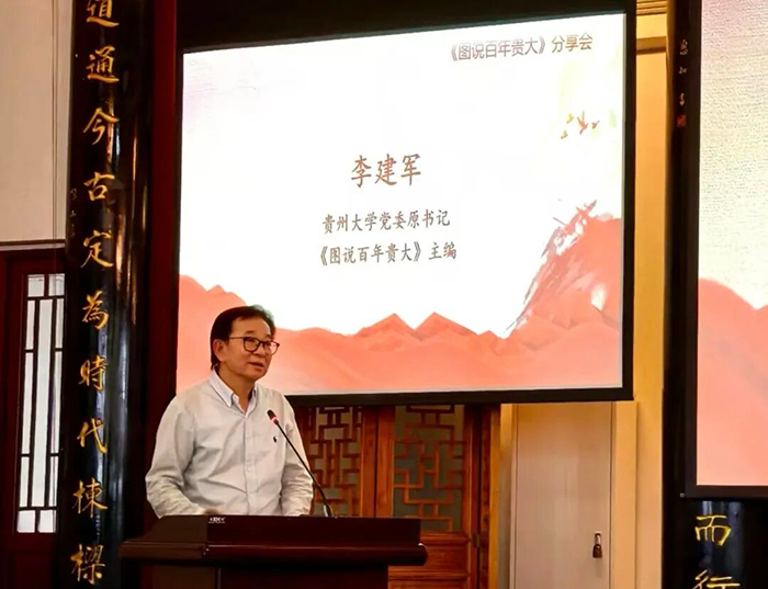 本书主编李建军在讲话中介绍了《图说百年贵大》的编撰历程与意义。“该书以直观的图像语言为基础,辅以精炼深邃的文字叙述,立体铺展学校一个多世纪以来艰苦创业、砥砺前行、开拓奋进的辉煌篇章。全书汇集上千幅珍贵历史照片和档案文件,其中许多系首次公开披露,具有重要史料价值。” 李建军表示,希望通过这本书,为后人架起一座理解学校历史、认同文化传统、汲取发展力量的精神桥梁。