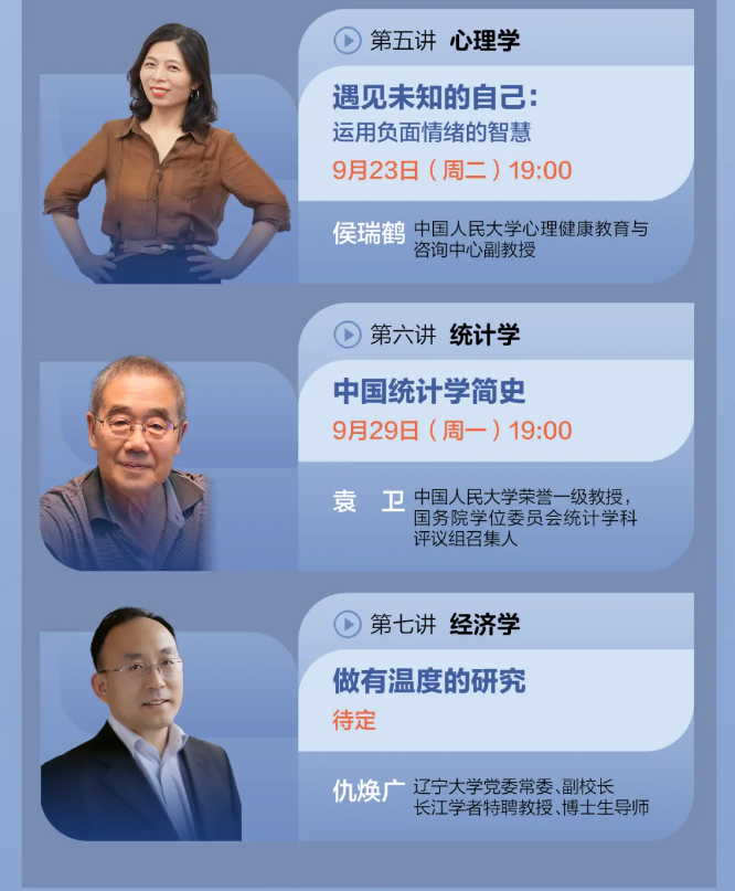 “CRUP开学第一课”是人大出版社每年9月面向大学生的综合活动策划,已成功开展三季,影响近千万学生,又是一年开学季,CRUP开学第一课·第四季再邀宝藏名师,为大学生讲授开学第一课,第五场心理学,9月23日晚开启,欢迎通过线上线下参与活动。