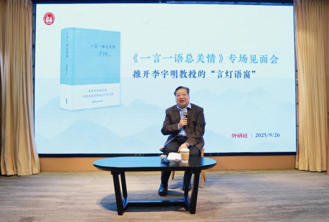 2025年9月26日,《一言一语总关情》专场读者见面会在北京外研书店以线上线下相结合的方式举行。本书作者、北京语言大学教授李宇明,外语教学与研究出版社(以下简称“外研社”)党委副书记、副董事长、总编辑刘捷与现场读者欢聚一堂,共同探寻“一言一语”背后的学术故事和真挚情谊。