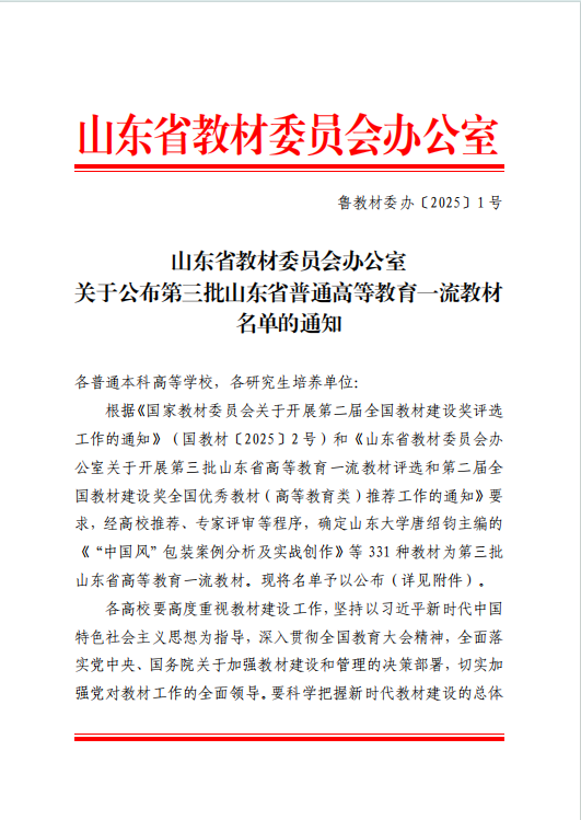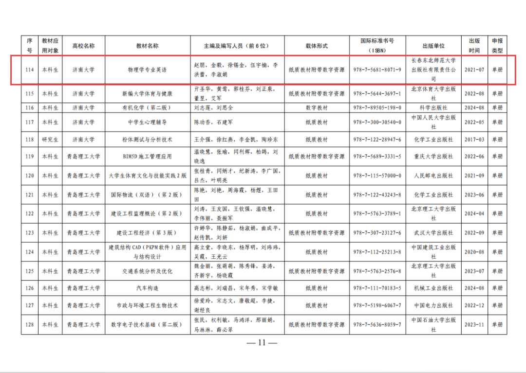 近日,山东省教育厅发布《山东省教材委员会办公室关于公布第三批山东省普通高等教育一流教材名单的通知(鲁教材委办〔2025〕1号)》。经各高校推荐申报、省级严格审核评审,第三批山东省普通高等教育一流教材名单最终确定,东北师范大学出版社出版的《物理学专业英语》教材成功入选。