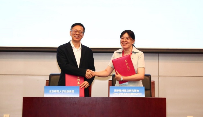 会上,北京师范大学出版集团与国家教材建设重点研究基地(中小学信息科技教材研究)签署全面战略合作协议,并联合正式发布中小学《人工智能》丛书及中小学人工智能教育实践平台。未来,出版集团将与教材基地开展全方位合作,共同推进人工智能的课程建设、教材研发与跨学科师资培训,系统总结推广优秀教学案例与区域实践模式,携手构建开放、协同、创新的数智教育新生态。