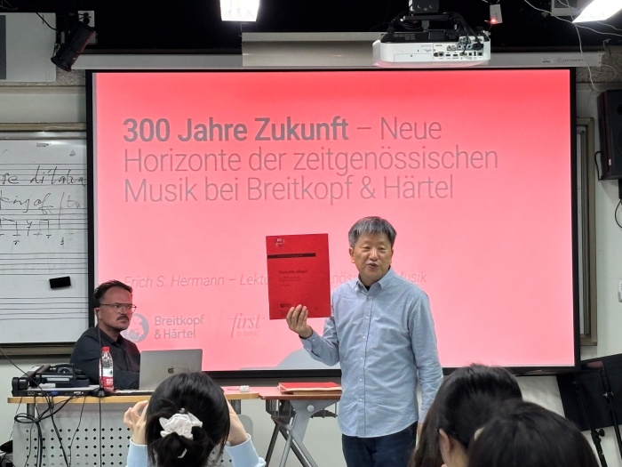 10月10日,由中央音乐学院出版社、中央音乐学院作曲系、中央音乐学院音乐学系联合主办的主题讲座如期举行。本次讲座特邀拥有300年历史的德国大熊音乐出版社现代音乐编辑艾里希·赫尔曼(Erich S. Hermann)先生担任主讲人,大熊音乐出版社中国事务代表王蕾女士担任翻译。讲座围绕“欧洲作曲家与出版社关系的演变”“音乐编辑的核心工作”“数字时代的行业变革”等核心议题展开深度分享,为现场师生搭建了连接国际音乐出版实践与学术思考的桥梁。