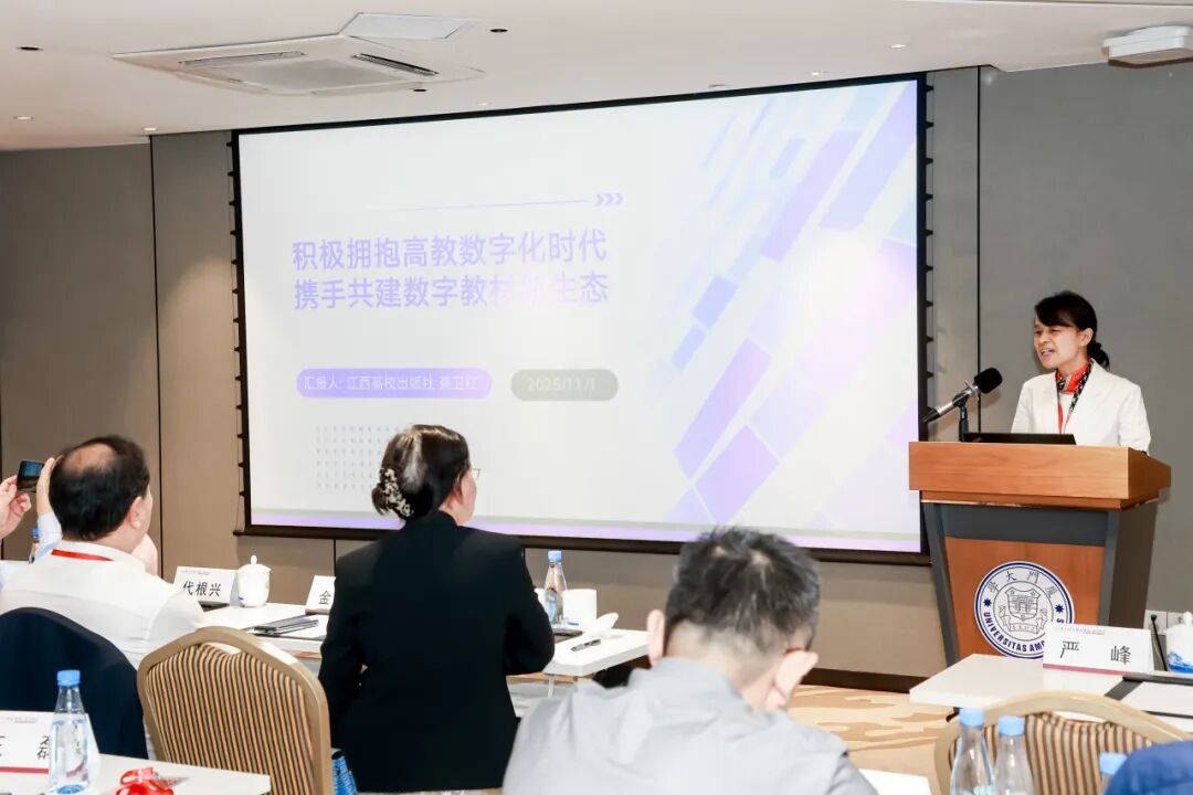 在主旨报告阶段,聚焦出版业前沿动态与发展趋势,邀请了5位大学出版社领导作主旨报告。同济大学出版社社长、总编辑金英伟,东南大学出版社党总支书记、社长白云飞,华东师范大学出版社党委书记、社长王健,江西高校出版社总编辑蔡卫红,中国石油大学出版社社长沈刘峡等五位嘉宾,先后围绕“清代出版活动对新时代出版的启示”、“守正创新·数智赋能——数字教材赋能高质量人才培养”、“以内容聚合共建出版新生态——‘S9’数字教材共同体推动协同创新与生态构建”、“积极拥抱高教数字化时代,携手共建数字教材新生态”、“数字教材建设实践”等主题作了精彩分享。报告内容兼具历史视野、理论深度与实践探索,为与会者带来了深刻的启发。
