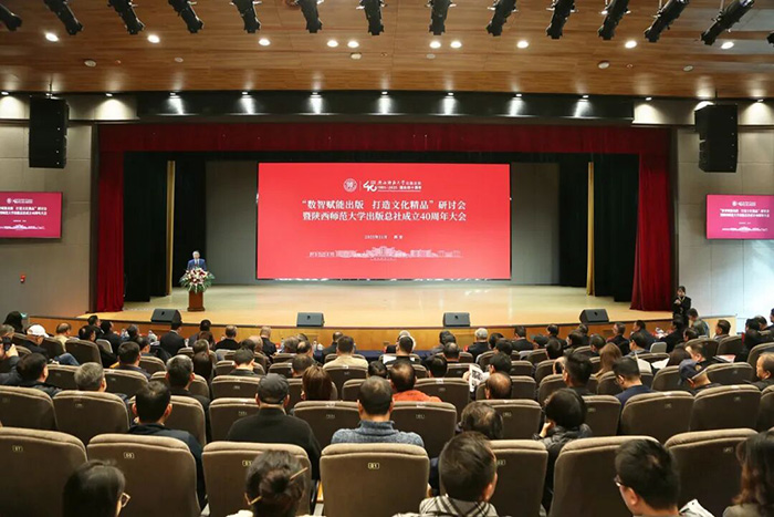 11月8日,“数智赋能出版 打造文化精品”研讨会暨陕西师范大学出版总社(以下简称“总社”)成立40周年大会在陕西师范大学举办。中国出版协会理事长邬书林,原新闻出版总署副署长、国家版权局原副局长阎晓宏,中国出版协会副理事长兼全民阅读工作委员会主任聂震宁,中国图书评论学会会长郭义强,中共陕西省委宣传部副部长李晓刚,中国编辑学会会长郝振省,韬奋基金会理事长刘伯根,中国教育学会常务副会长翟博,中国出版协会副理事长兼秘书长王利明,中国出版协会副理事长、学习出版社社长马国仓,中国大学出版社协会理事长李永强,中共陕西省委宣传部出版处处长高峰、副处长张彦锋,中国出版传媒商报社党委书记、社长宋强,中国出版协会副理事长惠西平,陕西出版传媒集团副总经理肖星,杭州电子科技大学融媒体与主题出版研究院院长韩建民,励讯集团中国区高级副总裁张玉国等领导及专家出席大会。陕西师范大学相关领导,全国师范大学出版社联合体各出版社、西北片区大学出版社各出版社、陕西省内各出版社以及省内外合作机构的领导嘉宾,与总社领导、离退休老领导、老同志及全体员工齐聚一堂,共贺总社40华诞,共话出版业高质量发展。
