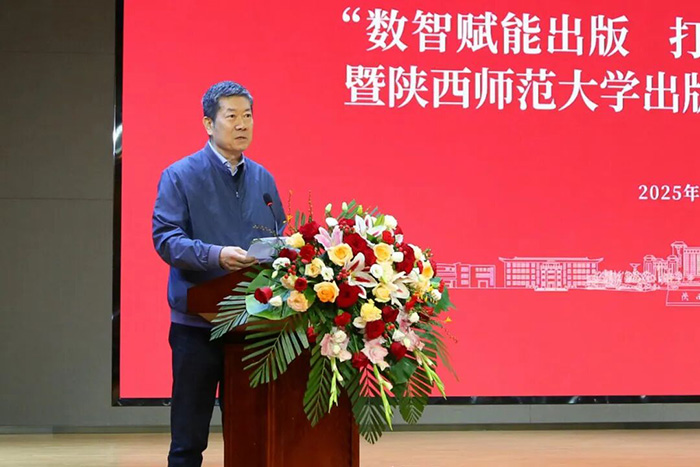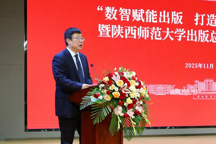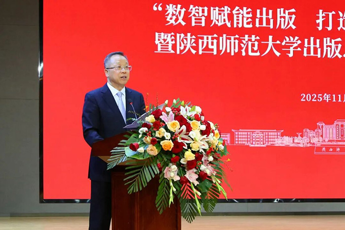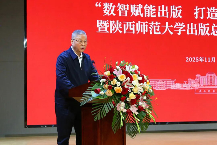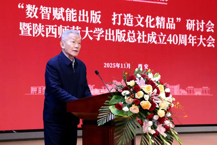 陕西师范大学校长游旭群致辞。他谈到总社40年风雨兼程的成长史,是一部与改革开放同频共振的奋斗史,是一部服务国家科教兴国与教育强国、文化传承创新与文化强国建设的奉献史,也是一部与学校休戚与共、相得益彰的发展史。总社始终坚持正确出版导向,坚守文化责任,深化改革创新,影响力、竞争力和服务能力持续提升,走出了一条独具特色的大学出版之路。希望总社以40年社庆为契机,承前启后,继往开来,植根博大精深的中华文明,顺应信息技术发展潮流,深刻把握数智时代的历史机遇,自觉担当新的文化使命,在坚守中创新,在融合中发展,更好服务文化强国、教育强国建设。