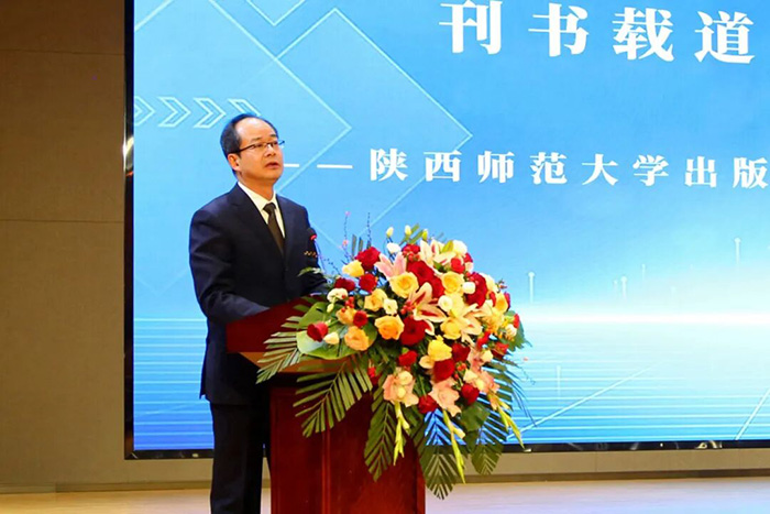 校长助理、党委宣传部部长、总社董事长袁一芳做总社历史与发展情况汇报。报告聚焦创业历程与使命担当,通过成绩的取得和对未来发展的擘画,展现了陕西师大出版人开拓进取、服务大局、久久为功、砥砺前行的豪情和信念。