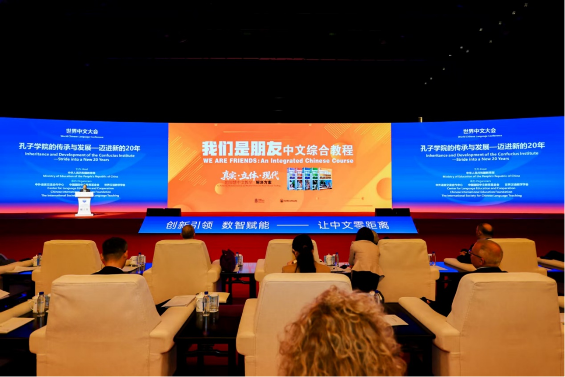 11月15日,2025世界中文大会“孔子学院的传承与发展”主题研讨会在国家会议中心举行。其间,由中国国际中文教育基金会、外语教学与研究出版社(以下简称“外研社”)共同设计研发的《我们是朋友:中文综合教程》重磅发布!