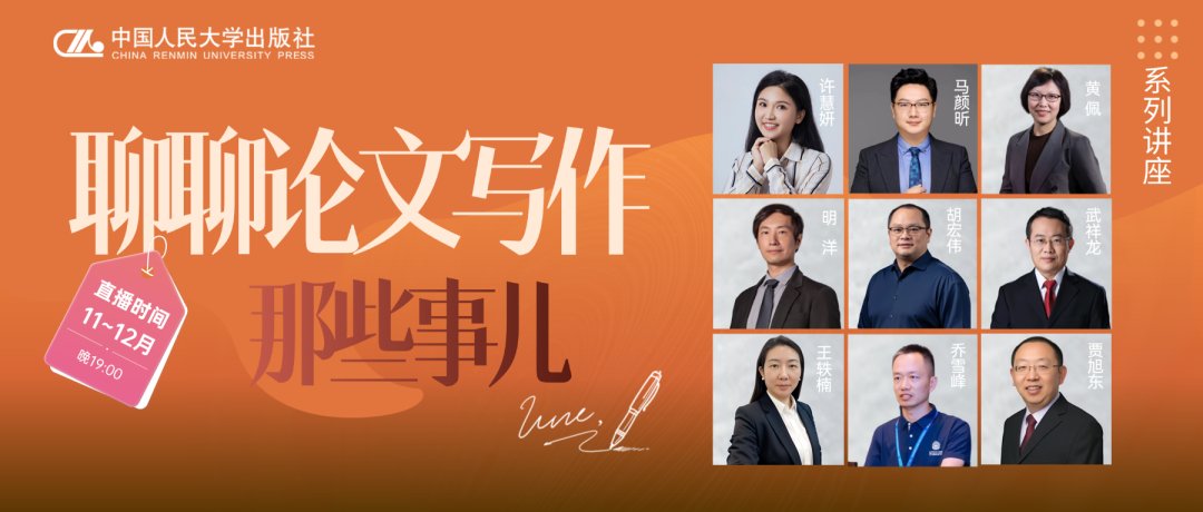 别担心,中国人民大学出版社“聊聊论文写作那些事儿”系列讲座重磅来袭,集结了多位深耕学术写作领域的作者,聚焦论文写作中最核心、最棘手的各个环节,提供体系化、可落地的方法技巧,少走弯路、高效搞定论文,摆脱写作焦虑。
