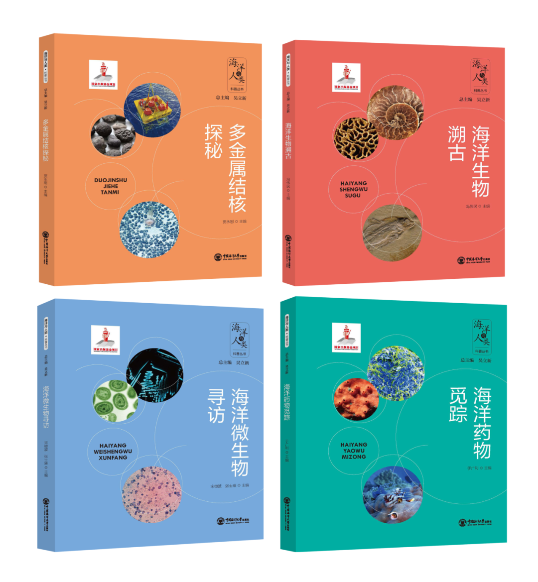 “海洋与人类”科普丛书分《海洋生物溯古》《海洋微生物寻访》《多金属结核探秘》《海洋药物觅踪》4册。《海洋生物溯古》梳理海洋生物演化历史中的重点事件和代表性生物类群。《海洋微生物寻访》讲解各种海洋微生物的形态结构和“本领”,阐述它们与资源开发、环境保护、气候变化的关系。《多金属结核探秘》全方位介绍应用前景广阔的深海金属矿产资源“新星”——多金属结核。《海洋药物觅踪》展示海洋药物的发展过程,以及各类海洋生物所含有的生物活性物质及从中研发的代表性药物。