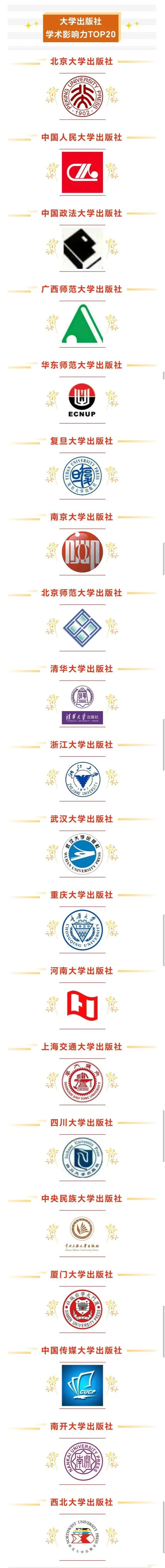 近日,中国人文社会科学综合评价研究院基于CSSCI(2024)引文数据编制的“大学出版社学术影响力TOP20”(2024)榜单正式发布。河南大学出版社凭借扎实的学术出版实力与广泛的知识辐射效应,在全国109家大学出版社中脱颖而出,与北京大学出版社、中国人民大学出版社、广西师范大学出版社、复旦大学出版社等业界标杆一同跻身TOP20阵营。
