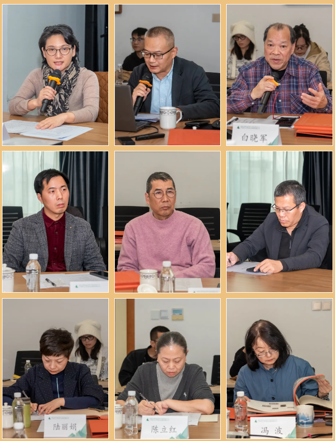 座谈会上,何香凝美术馆典藏研究部房桦介绍了何香凝作品的收藏以及何香凝艺术作品的特点、历史意义和艺术成就,并就以往何香凝作品集的编印、出版等问题进行了阐述;广西师范大学出版社编审、美术馆馆长张明概述了《何香凝美术馆馆藏何香凝书画作品全集》的出版意义、学术框架与出版规划,提出打造精品、学术延伸、国际传播、数字融合及多元推广五大策略;广西师范大学原副校长、广西美术家协会原副主席白晓军论述了何香凝与桂林的渊源,其对传统绘画的继承、创新,以及该书的学术价值、人文价值。广州市书法家协会副主席兼执行秘书长陈泽雄从编纂体例、装帧设计、纸张选取、印刷工艺和细节处理等多个角度给出了具体建议;广西艺术学院教授刘新对该书的编纂体例、编辑思路、出版思路等提出了建议,强调兼顾文献性与学术性;广州市书法家协会副主席兼执行秘书长麦录认为该书应成为一部立体的“生命史”,建议增加何香凝先生艺术人生的相关信息;广西师范大学美术学院院长陆丽娟梳理了何香凝艺术语言的演变轨迹,剖析了革命事件、交游网络对其审美取向的塑造作用,分析了其作品的精神内核;桂林市文艺评论家协会主席陈立红阐述了何香凝的革命精神、家国情怀及其作品的艺术特质和艺术风格。广西师范大学出版社集团副总编辑、编审冯波表示,该书的出版将扩展广西师范大学出版社文献出版的深度和广度,为艺术文献的出版奠定坚实的基础。