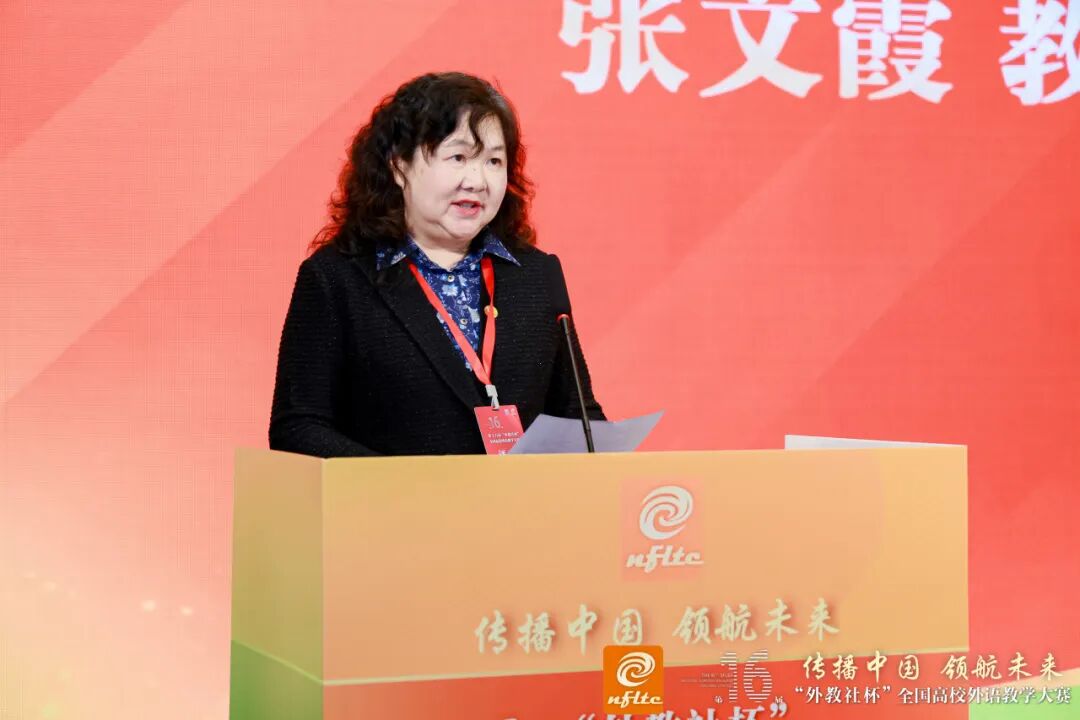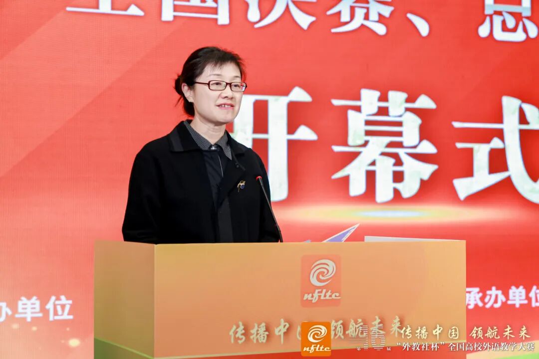 大赛全国组委会主任、北京联合大学常红梅教授表示,人才是民族复兴、国家发展的重要资源。作为联通世界的桥梁,外语教育在服务对外开放战略中发挥着不可替代的专业作用。本次大赛有力引领高等教育人才培养方向,将新技术与赛事深度融合,勾勒出了未来外语教育的发展蓝图。最后,她希望外语教育工作者将课程思政融入语言教学、主动拥抱技术变革,让外语课堂更具活力。
