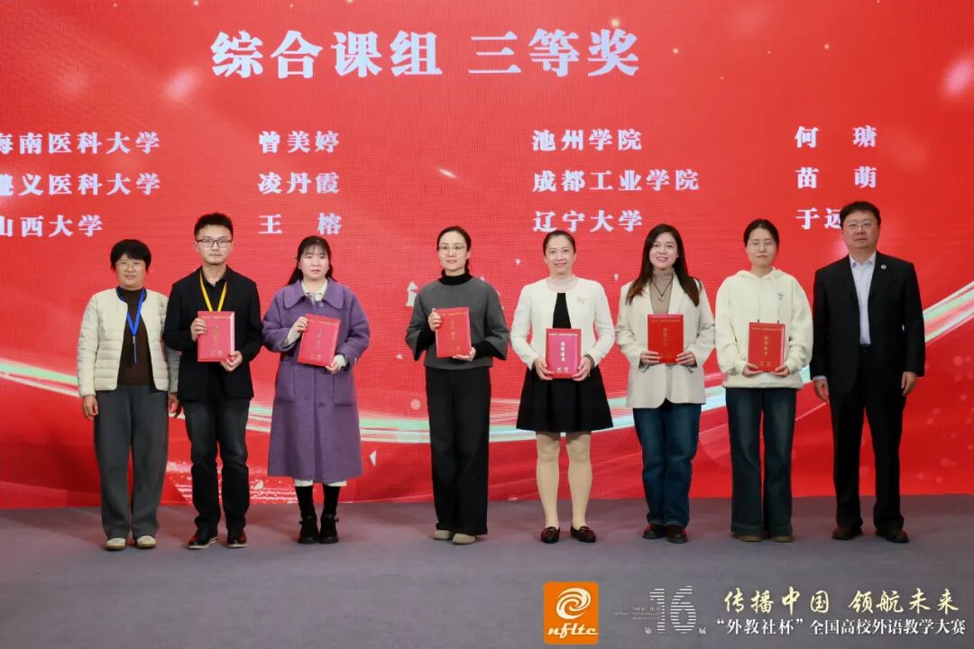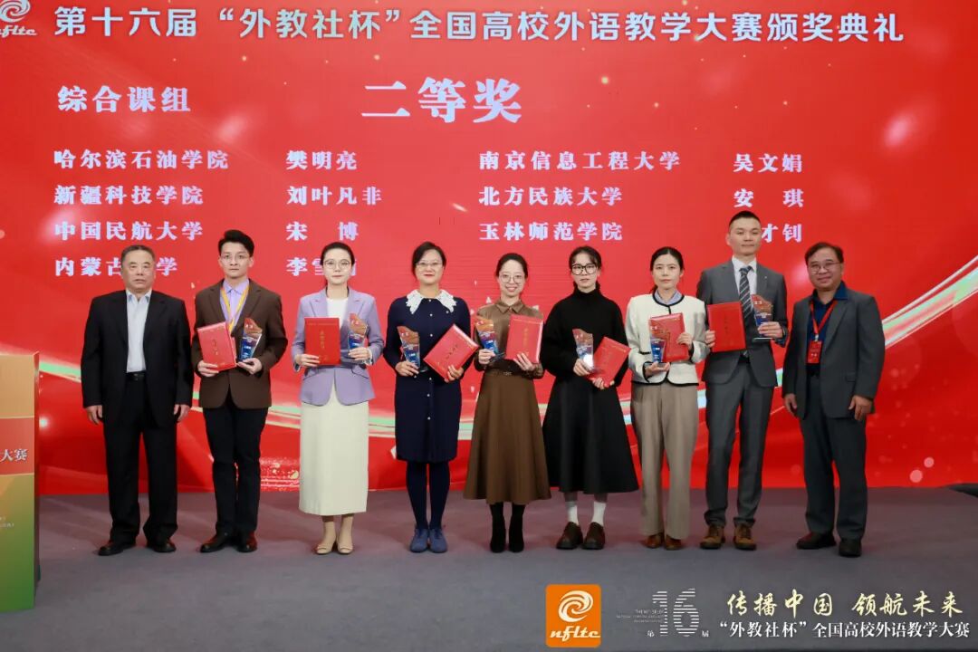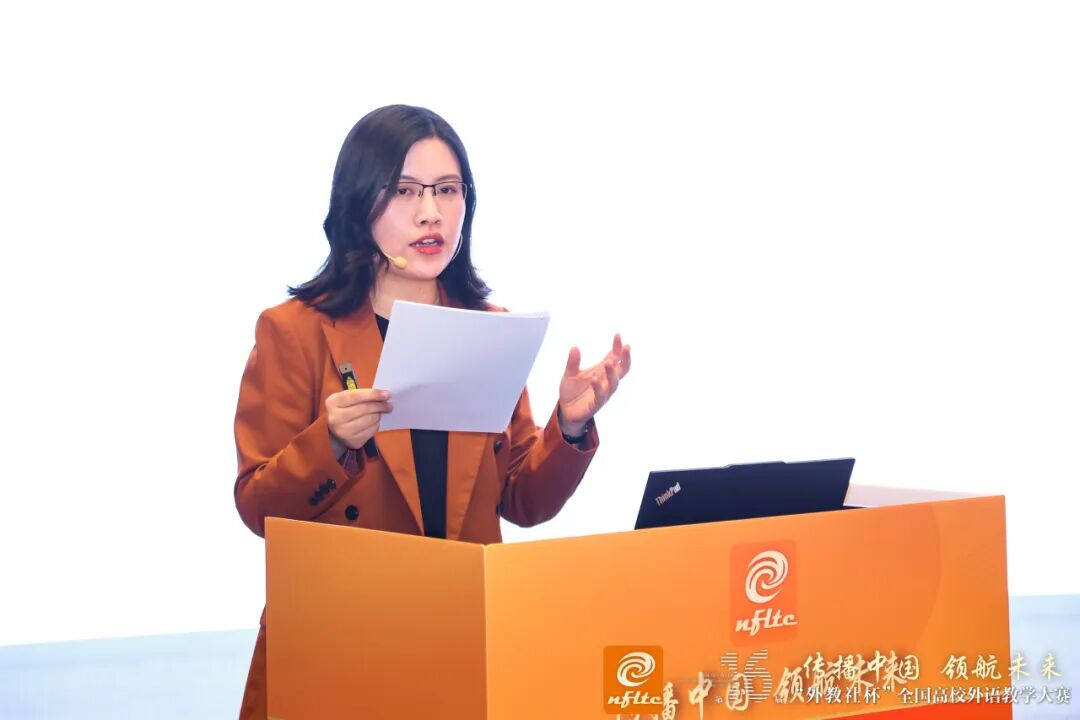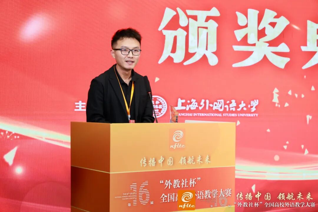 综合课组特等奖获奖选手、华中农业大学陈晓彤老师在获奖感言中首先向大赛组委会的精心组织、评委专家的专业指导、同组选手的良性互动,以及学校教学团队的全方位支持致以诚挚谢意。“这次大赛不仅是一次教学能力的展示,更是一次深刻的教学反思之旅。”陈老师动情地说。她特别提到,在赛前三天,通过面向学生试讲获得的真实反馈,促使她重新审视教学设计中的不足并及时调整优化。这一经历让她深刻认识到,以学生为中心的教学理念,永远是教学创新的出发点。谈及人工智能技术对教育的影响,陈老师表示,AI确实正在重塑教学流程与方法,但真正优秀的课程灵魂,始终在于教师对教学本质的把握——那些能激发学生兴趣、引发深度思考的课堂体验,是技术无法替代的教育温度。在智能时代背景下,坚守育人初心、聚焦学生成长,才是外语教育不变的追求。