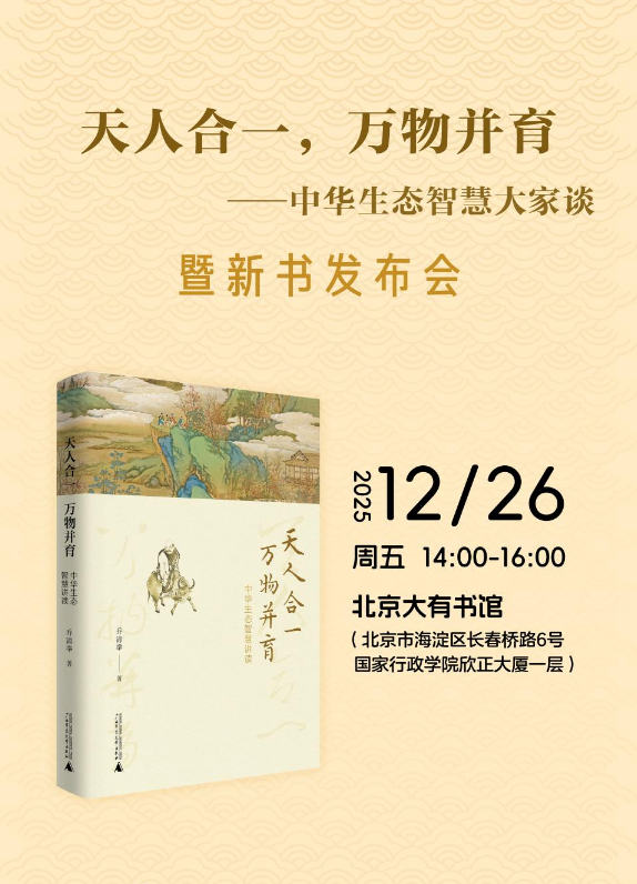 12月26日,一场把经典智慧讲得“好听、好看、好懂”的新书发布会即将开启——让我们在真实的故事、经典的典故与沉浸式图文之间,重新发现中华传统文化中的生态智慧之光。