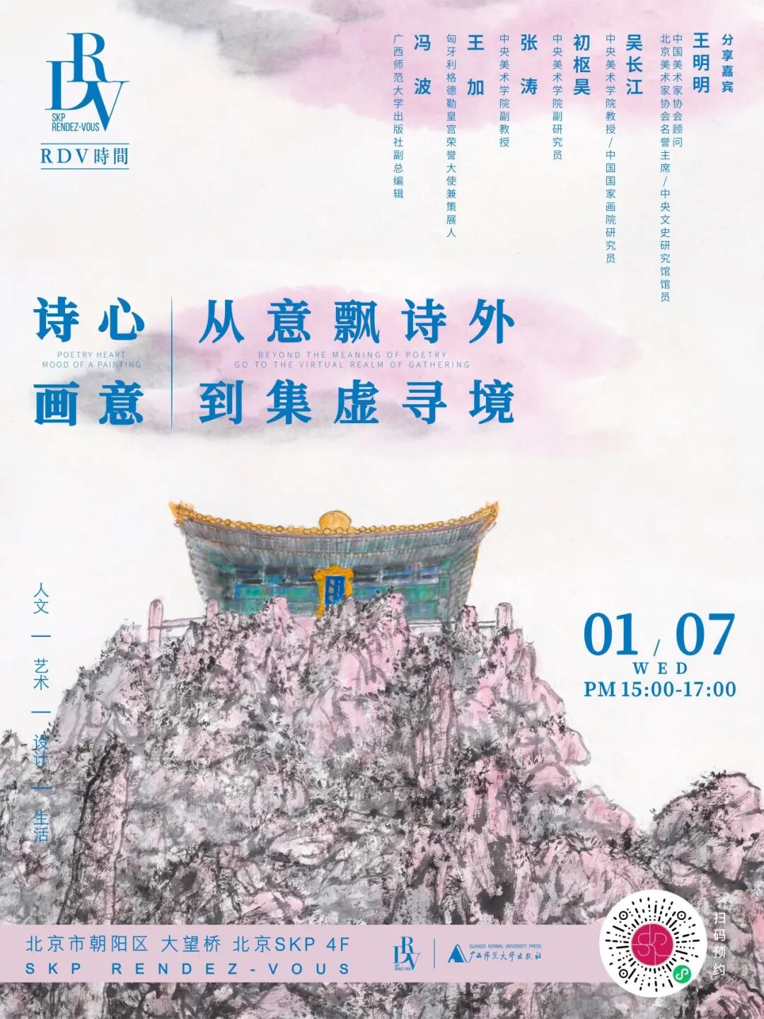 2026年1月7日(周三)下午15:00,广西师范大学出版社邀请到中国美术家协会顾问、北京美术家协会名誉主席、中央文史研究馆馆员王明明,中央美术学院教授、中国国家画院研究员吴长江,中央美术学院副研究员初枢昊,中央美术学院副教授张涛,匈牙利格德勒皇宫荣誉大使兼策展人王加,以及广西师范大学出版社副总编辑冯波展开精彩对谈。