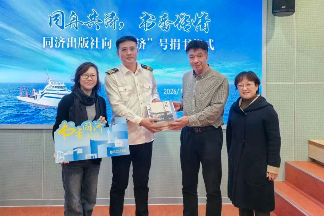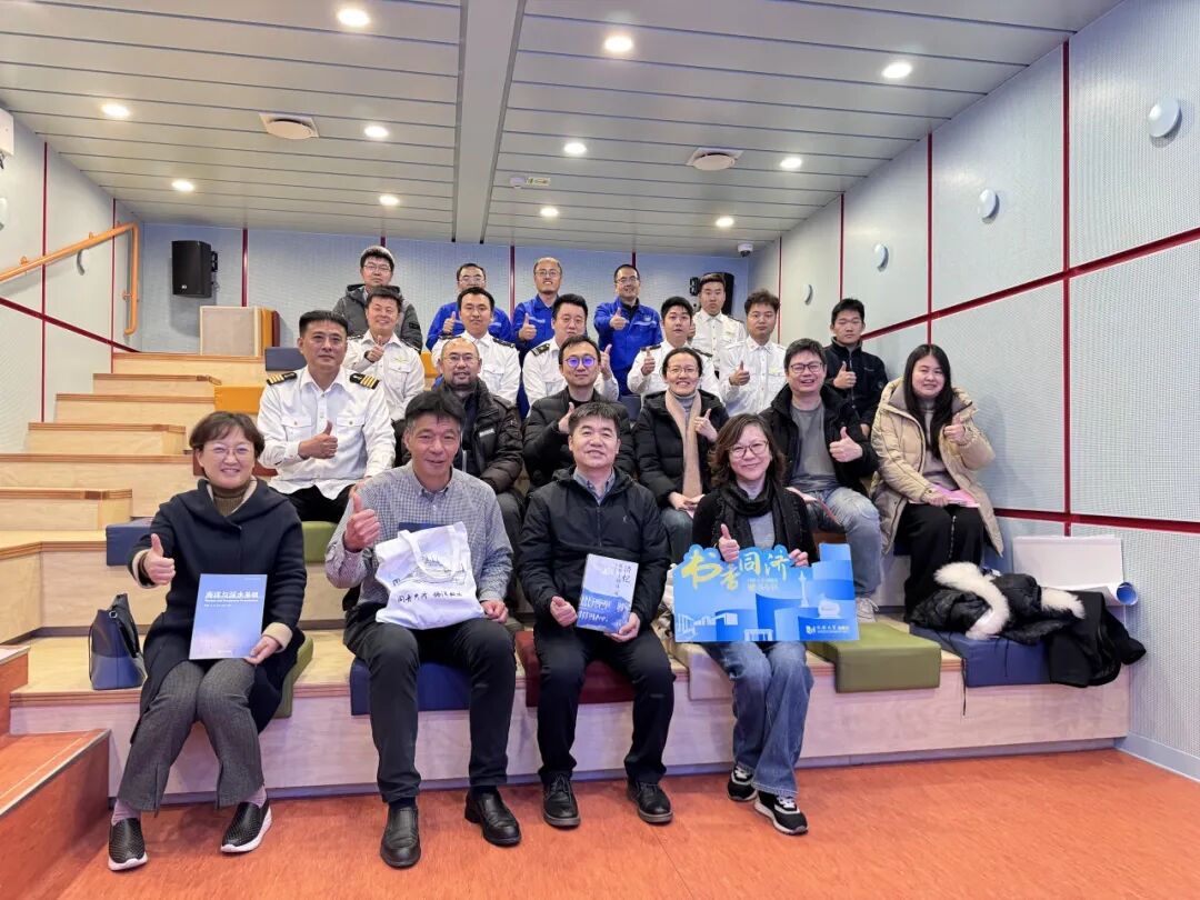 2026年1月19日,“同舟共济 书香传情——同济大学出版社向‘同济’号科考船捐书仪式”顺利举行。同济大学出版社党委书记吴为民,党委副书记、纪委书记危红,同济大学海洋与地球科学学院副院长、船舶管理中心主任拓守廷,海洋与地球科学学院党委副书记李丽,“同济”号科考船船长石斌,以及来自船舶管理中心、同济大学出版社等单位相关人员参会。