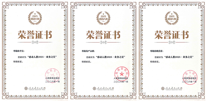 陕西师范大学出版总社社长刘东风获评“感动人教2025·创新人物”,副社长杨沁获评“感动人教2025·教学资源服务奖”,李昊、严永刚、姚蓓蕾获评“感动人教2025·业务之星”。