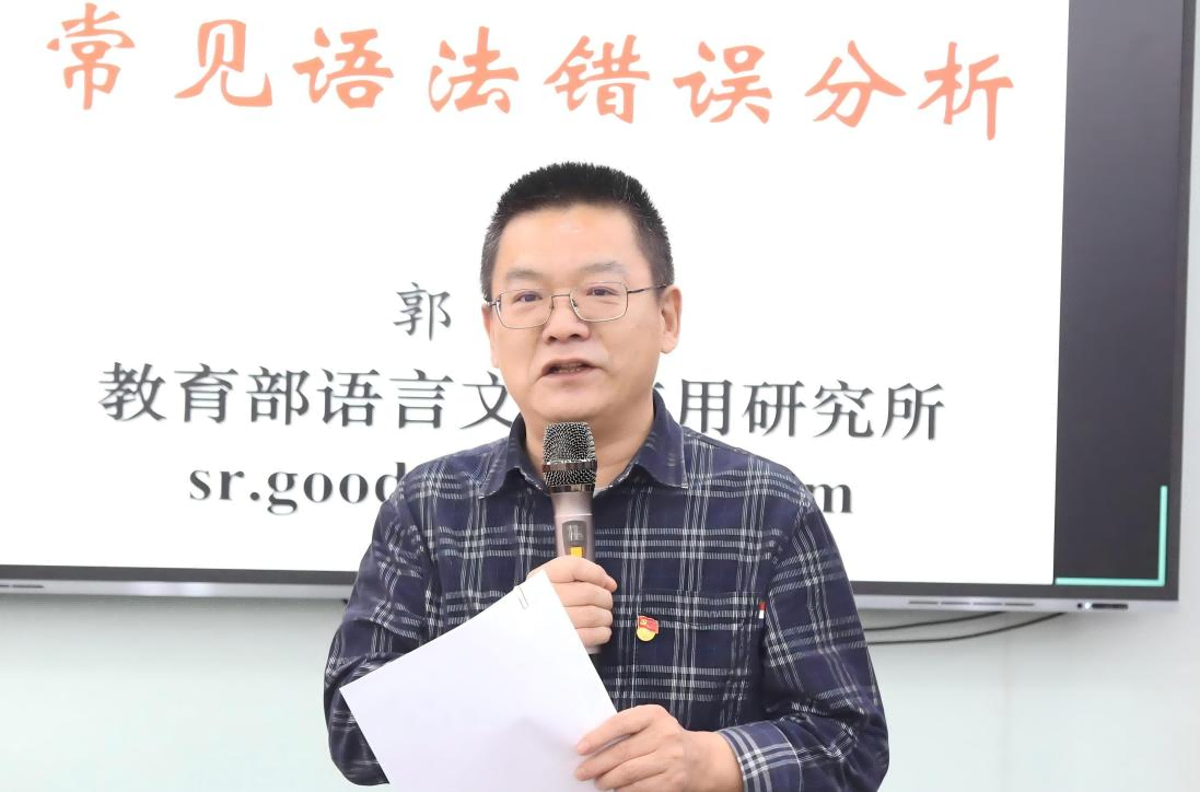 培训特邀教育部语言文字应用研究所研究员、中国社会科学院大学(研究生院)教授、博士生导师郭龙生作常见语法错误分析专题授课,集团各部门编辑、公文专员共计110余人参加培训。