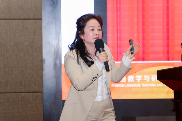 黄水玉聚焦《新概念英语》的核心教育理念,提出语言教学应回归本质,以培养学生的实际运用能力为核心。通过回顾自身三十年的教学实践,她强调标准发音与语感培养对语言习得的重要作用。针对数字化的教学趋势,她分享了《新概念英语智慧版》在外研U学APP端智能纠音、趣味配音等数字功能的教学应用,并表示《新概念英语智慧版》丰富的数字资源以技术赋能教育,有效推动了英语教育提质增效,全面提升了学生的综合语言素养。