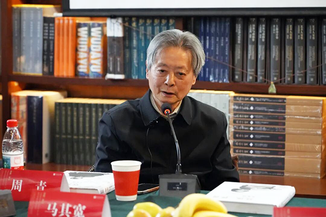 中国美术学院教授马其宽在会上回忆,自己1960年入校,受潘天寿、吴茀之、诸乐三等名师亲授,学校重视文化课与基本功,强调书画同源,学风严谨。他谈及浙派花鸟师承脉络,推崇吴昌硕体系与两宋院体,感念恩师手把手帮学生打通小写意与大写意的创作壁垒。他主张学画要入流派、守正脉,先深耕传统再求拓展,不急于创新。最后,他寄语青年学子沉心钻研、终身治学,感谢学院与出版社支持丛书出版,让花鸟画文脉得以传承。