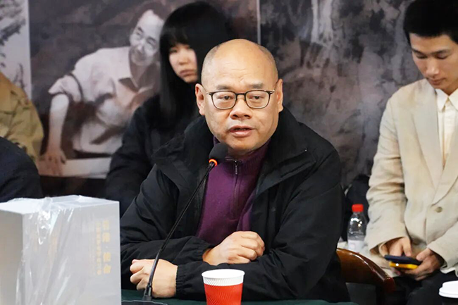 丛书项目主持人、副总主编,中国国家画院花鸟画所艺术家刘海勇教授通过视频致辞,介绍了丛书项目概况,丛书自2018年启动以来,在学院及宣传部等多方支持下稳步推进,丛书以尊师重教、传承文脉为初心,系统整理老先生们的从艺、治学与创作经验,兼具温度与价值。项目凝聚众多师生与部门合力,离不开学院领导、宣传部、编辑出版团队、硕博研究生及出版社的耐心打磨和持续付出。他向参与丛书编撰的各位前辈艺术家及家属致以诚挚谢意,正是他们无私分享宝贵经验,才让学术文脉得以传承延续。