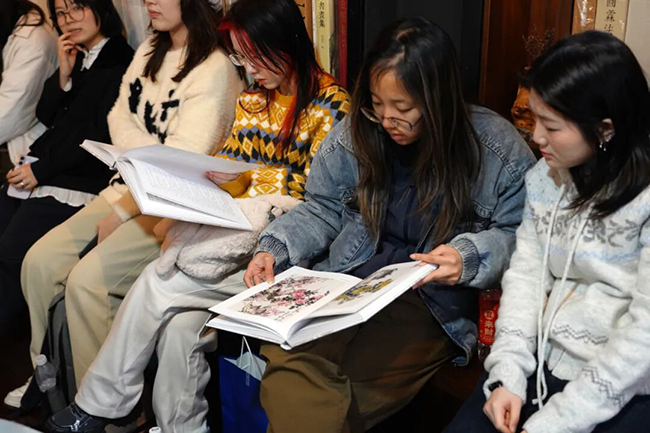 在提问环节,有学生向马其宽教授请教,创作写意画时,笔墨功底更重要还是阅历更重要?青年想创作好写意画应该更侧重哪一点?马其宽教授认为,创作写意画,笔墨功底与人生阅历相辅相成,青年学画应先重基础,再循序渐进。他回忆早年求学时,潘天寿等先生不主张模仿他人,鼓励学生找到自我风格,强调扎实的造型、结构认知与写生观察是关键。马其宽教授表示,书画同源至关重要,写意用笔如同书法,需敢下笔、懂笔墨规律,切忌浮躁求快。同时要重视文学、书法、篆刻等综合修养,远离庸俗与江湖习气,坚守高雅审美。创作创新并非刻意求变,而是在深厚传统功底上自然形成面貌。马其宽教授最后寄语青年学生,按部就班打好基础,认真跟随老师学习,多观察自然、体悟生活,沉下心长期积累,才能真正掌握写意画的精髓,走出属于自己的艺术道路。