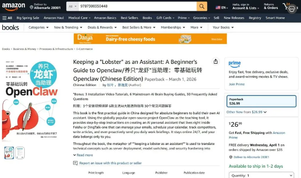中国人民大学出版社的新书《养只“龙虾”当助理》已经全球同步现货了!您可以在英国、新加坡、澳大利亚、西班牙、印度、巴西、美国、墨西哥和加拿大的电商平台购买到中文版图书。