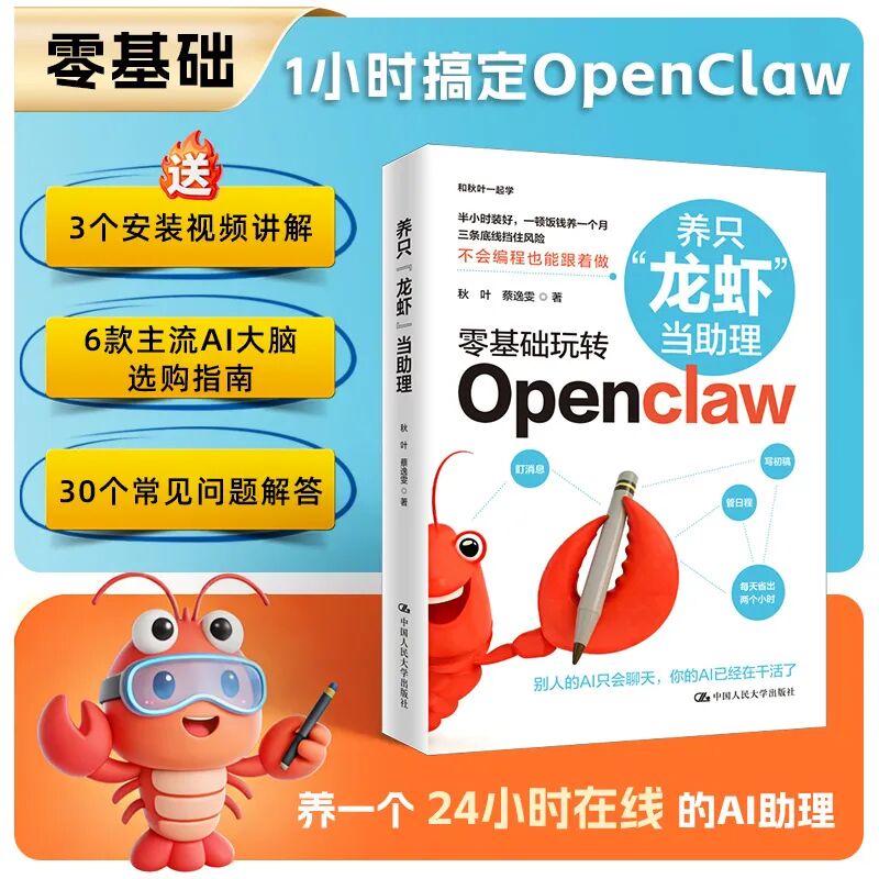 同时,中国人民大学出版社也邀请到了本书作者秋叶老师与蔡逸雯老师共同做客直播间,为全球读者拆解如何不用编程就能养只“龙虾”助理帮你干活。直播时间为2026年4月2日晚7点,欢迎大家预约直播,与秋叶老师线上互动!