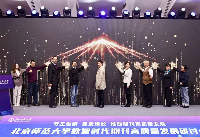 在主题报告和研讨交流环节,语文出版社总编辑、《中国编辑》主编、《数字教育前沿(英文)》执行副主编龙杰,北京大学文献计量学研究室主任张俊娥,《北京师范大学学报(社会科学版)》主编、北师大文学院院长王立军,光明日报教育家期刊社社长徐功明,清华大学出版社期刊中心主任、中国高校科技期刊研究会副理事长张莉,上海交通大学期刊中心主任谈毅,北京师范大学数字出版研究院执行院长、华侨大学新闻与传播学院院长、《教学管理与教育研究》主编万安伦,《比较教育研究》执行主编鲍东明等,围绕践行马克思主义出版观推动期刊高质量发展、数智时代期刊发展转型、期刊评价改革、期刊学术影响力提升、期刊服务学科建设、打造一流期刊集群等一系列议题展开深入研讨。研讨会上,北京师范大学期刊社社长,北京师范大学出版集团党委书记、董事长朱生营从时代坐标、坚守初心、核心使命、实践路径四个维度,分享了北师大期刊社建设发展的探索与思考,提出期刊社立足学校发展实际,确立了管理、平台、服务三位一体的核心定位,并将以强化顶层设计、完善制度体系、严守思想阵地、建强人才队伍、建设公共平台、扩展品牌价值等“六大行动”为抓手,推动期刊社从职能明晰走向效能释放、从制度构建走向价值创造,积极探索具有北师大特色的期刊集群发展之路,努力打造与学校“双一流”建设相匹配的高水平期刊矩阵。