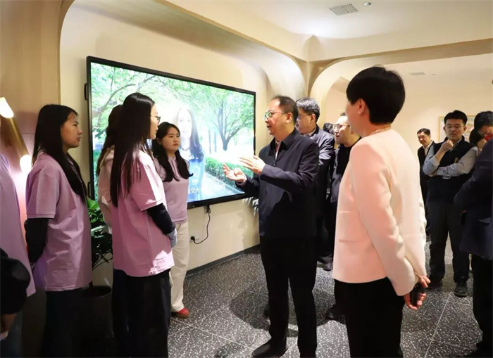 仪式结束后,校领导一行前往思源导览厅参观,并对“青阅交大”校园文化志愿宣讲团的宣讲工作提出具体指导意见。柴渭强调,校园导览是学校对外展示的重要窗口,要进一步优化宣讲内容与形式,深度对接学校招生工作,将校史宣讲与招生宣传有机结合,充分发挥文化阵地的育人功能与社会服务功能。