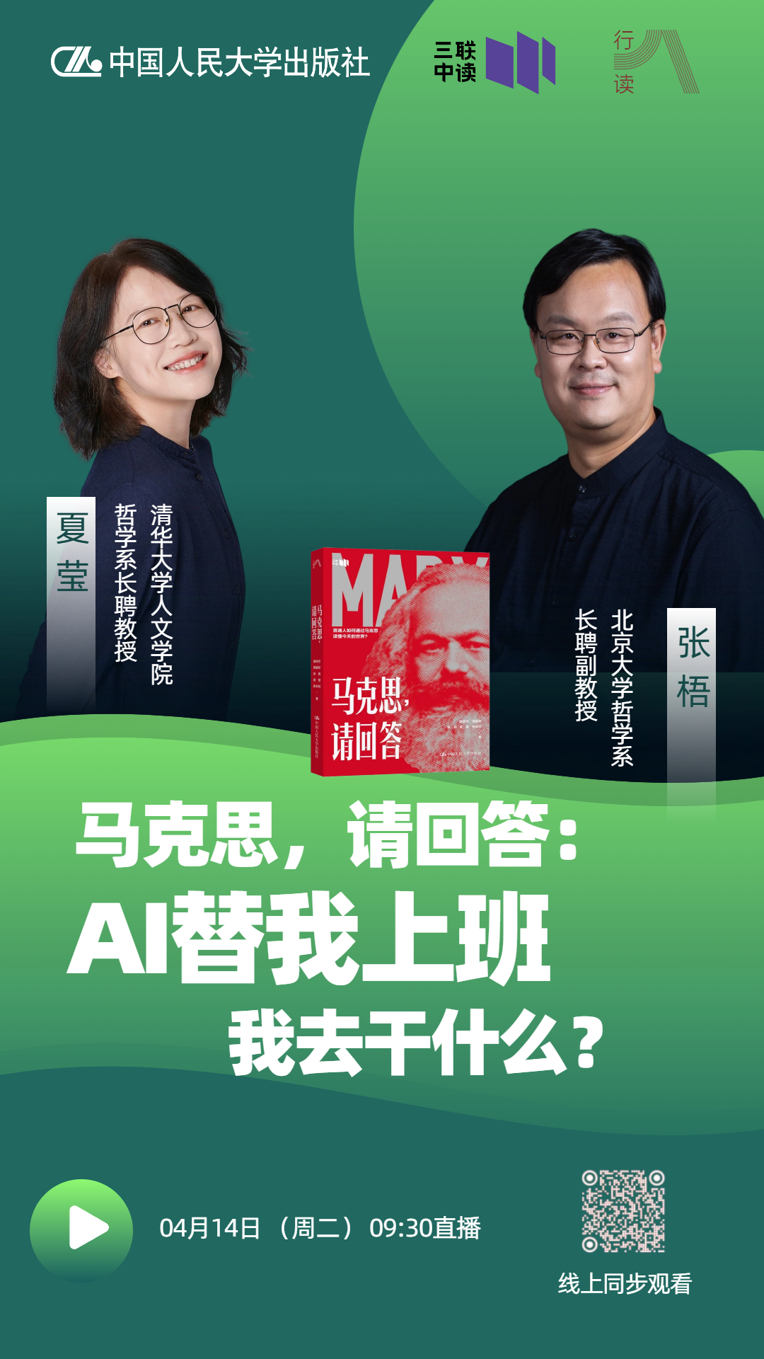 如果马克思活在今天,他会如何应对当下的“AI替代焦虑”?回望马克思的一生,给当下的我们带来什么样的经验与启示?《马克思,请回答》的两位作者清华大学夏莹教授、北京大学张梧教授将在这场学术对谈中,用马克思的思想,解答如今我们最迫切的困惑。这场对谈,是我们对马克思这位先知的怀念,也是对马克思思想的延伸:把马克思从书斋里请出来,请到当下,和面临困惑与焦虑的我们一起聊一聊。