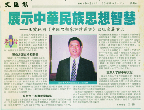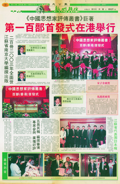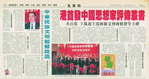 1999年5月25日,《中国思想家评传丛书》百部(香港)首发式后,香港《文汇报》、《大公报》等媒体的报道。