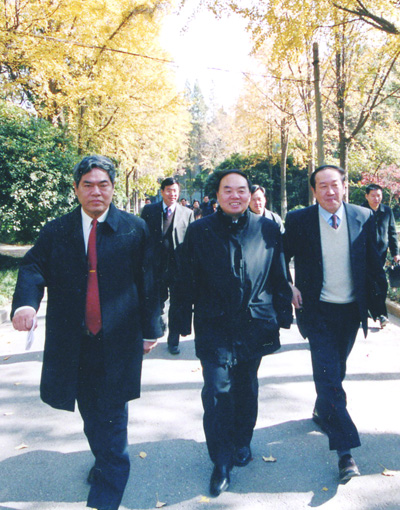 教育部周济部长(中)多次视察南京大学,对南京大学的工作包括《评传丛书》的工作给予关心和支持。