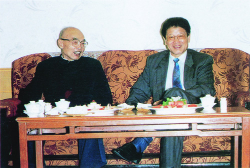 1996年5月14日下午,中共中央政治局委员、国务委员、《评传丛书》名誉顾问李铁映同志到江苏饭店看望匡亚明同志。