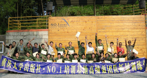 为了增加团队凝聚力,拓展思维,重庆大学出版社在召开《关于“走出去”发展战略研讨会》之前,对参会的全社中层以上干部和国际合作部职工进行了一次别开生面的拓展培训。