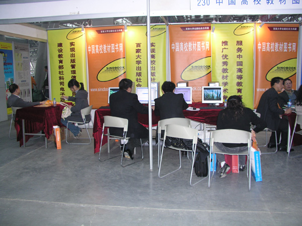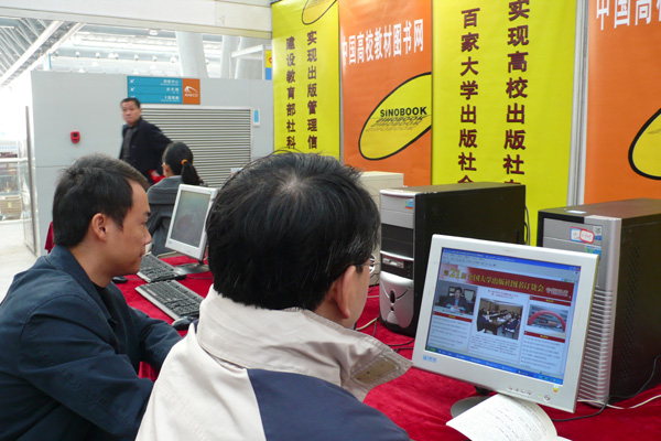 中国高校教材图书网用户在网站展台查阅资料、洽谈业务