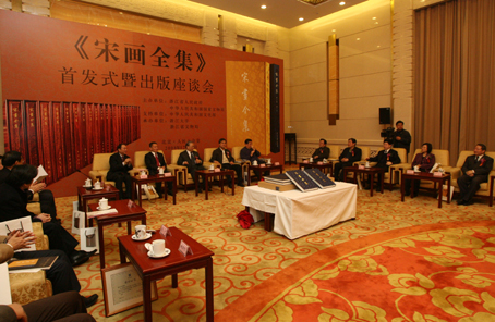 浙江日报北京12月28日电(记者张冬素 通讯员单泠 周炜)浙江文化研究工程重点项目、浙江大学出版社负责出版的大型典籍——《宋画全集》首批8册图册面世。12月28日上午,省政府、国家文物局在北京人民大会堂举行首发式暨出版座谈会。全国人大常委会副委员长路甬祥为《宋画全集》首发揭幕。中国工程院常务副院长潘云鹤、新闻出版总署副署长邬书林、文化部副部长陈晓光、中国文联副主席冯远、国家文物局副局长董保华、故宫博物院院长郑欣淼出席。省委常委、宣传部长黄坤明主持首发座谈会。浙大党委书记、《宋画全集》编委会主任张曦在会上介绍了《宋画全集》编辑出版的情况。
