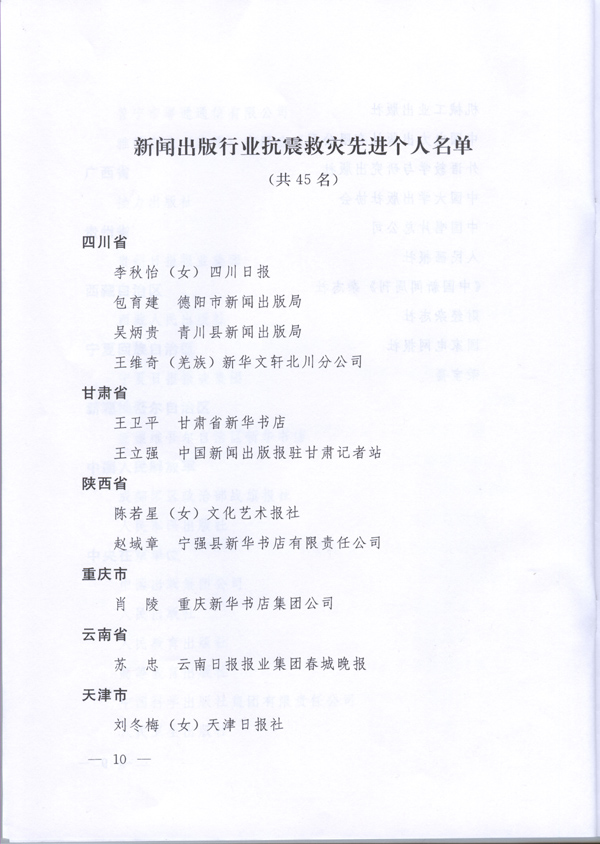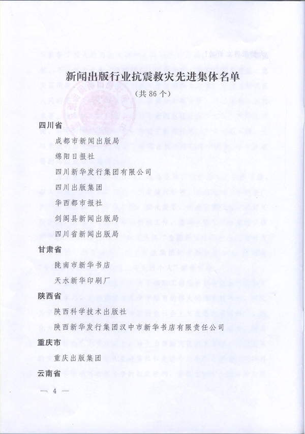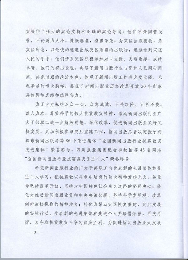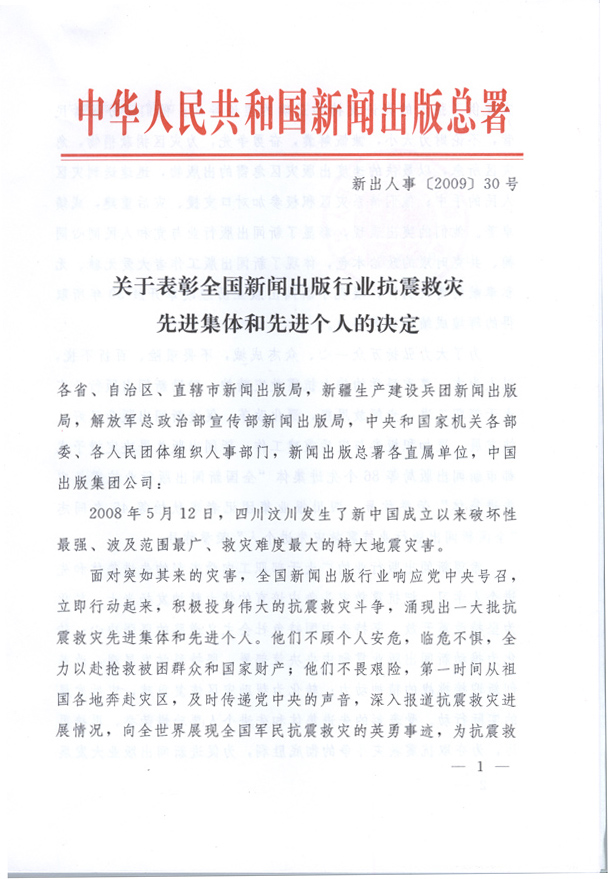 新闻出版总署关于表彰全国新闻出版行业抗震救灾先进集体和先进个人的决定 - 出版动态 - 中国高校教材图书网