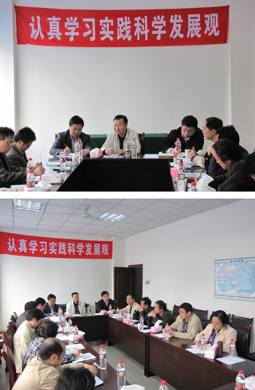 2009年4月8日下午,学校蒋葛夫副校长、四川省新闻出版局图书处张志怀处长、校科技产生集团总经理苏斌、党委书记田解放、党委宣传部副部长朱正安等,出席了出版社学习实践科学发展观专题学习讨论会。