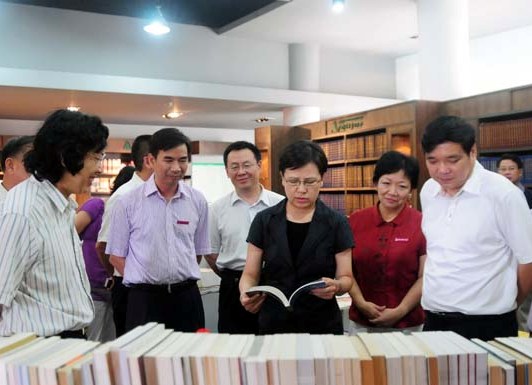 鲁昕一行参观了广西师大社陈列室,了解出版社的组织架构,询问改制及谋划上市的情况,翻阅了《柏拉图作品集》《千里之行:我的故事》《西域考古图记》等优秀图书。鲁昕与广西师大社社长何林夏饶有兴致地探讨了桂系文化,并说:“文化是在地理的缝隙中生长出来的。”她还对出版社今后的发展提了产业化思路、商品化模式、资本化融资的建议,以及将中华文化传播到海外的期望。
