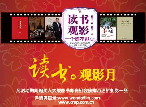 2010年1月22日至2月22日,凡购买人大版图书即有机会获赠:万达影城8折电影折扣券一张!(具体请到当地参加活动书城了解详情!)